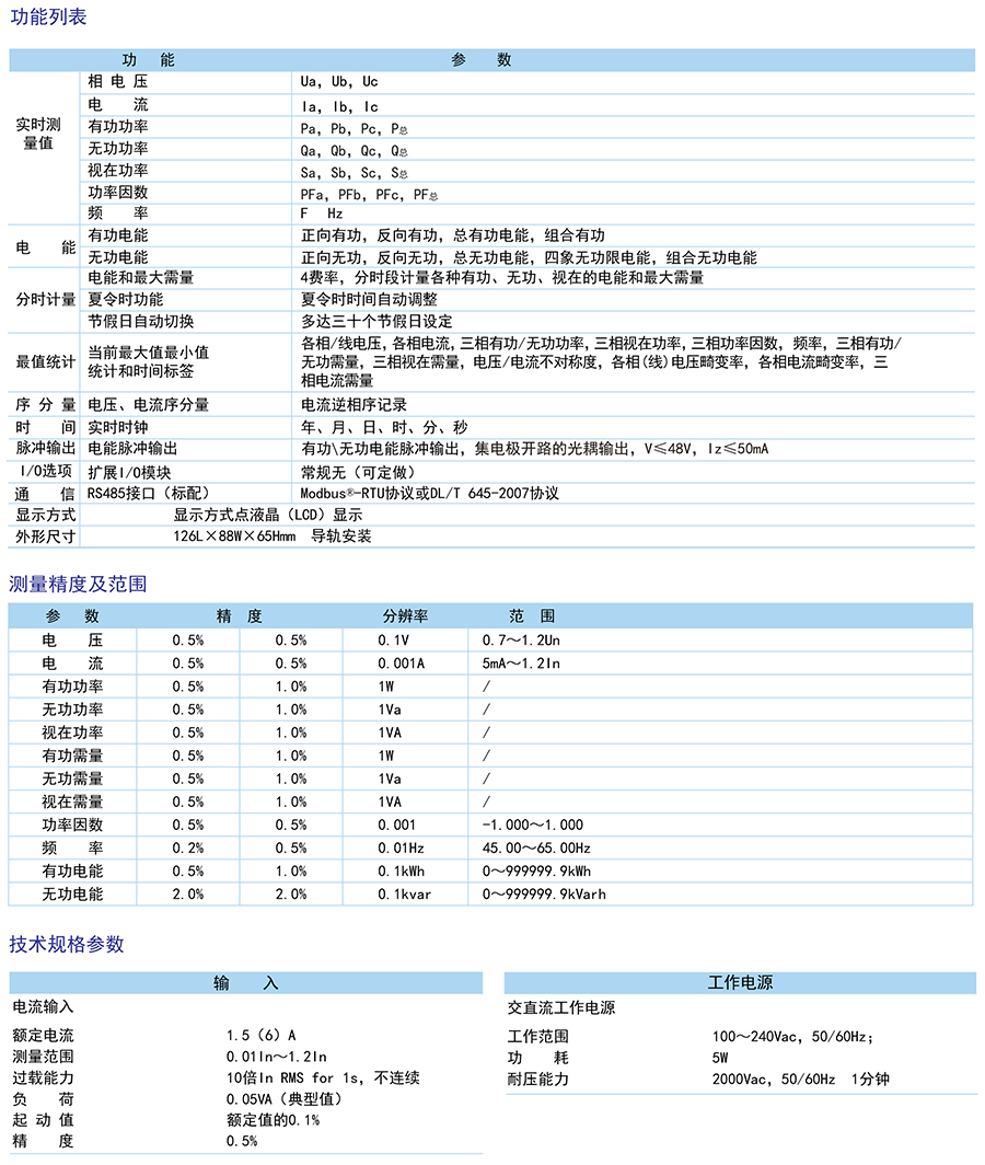额定电流3*1.5(6)A,方便选用/5A标准电流互感器