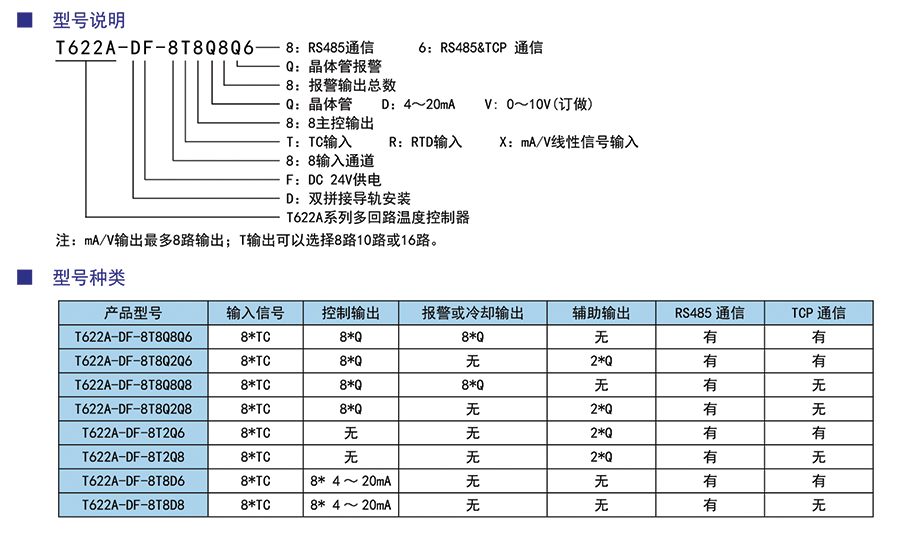 具有8回路控制输出功能,输出方式可以选择是晶体管输出或是4-20mA控制输出;