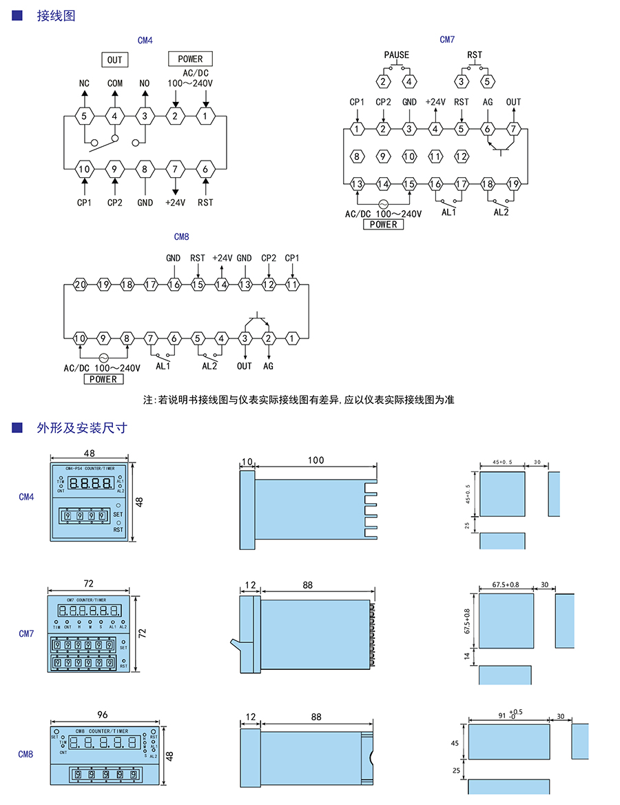 最多两路输出通道(继电器或晶体管),AL1/AL2