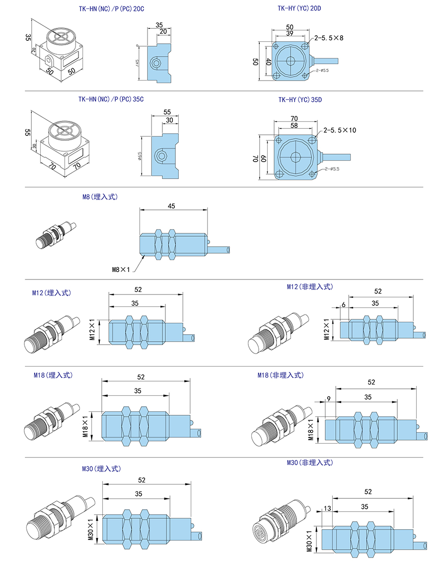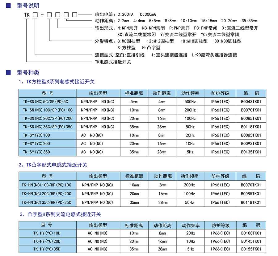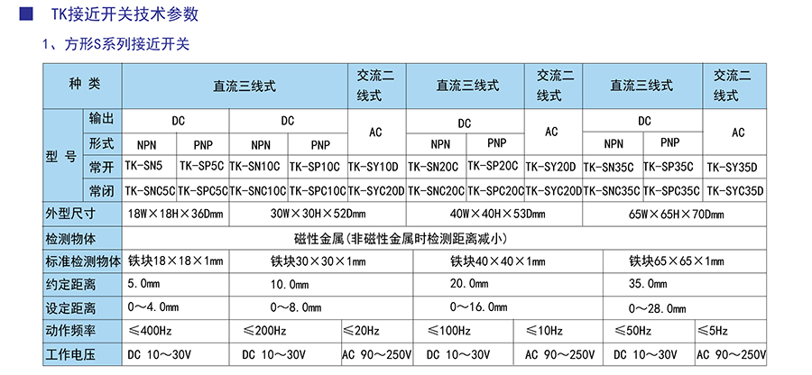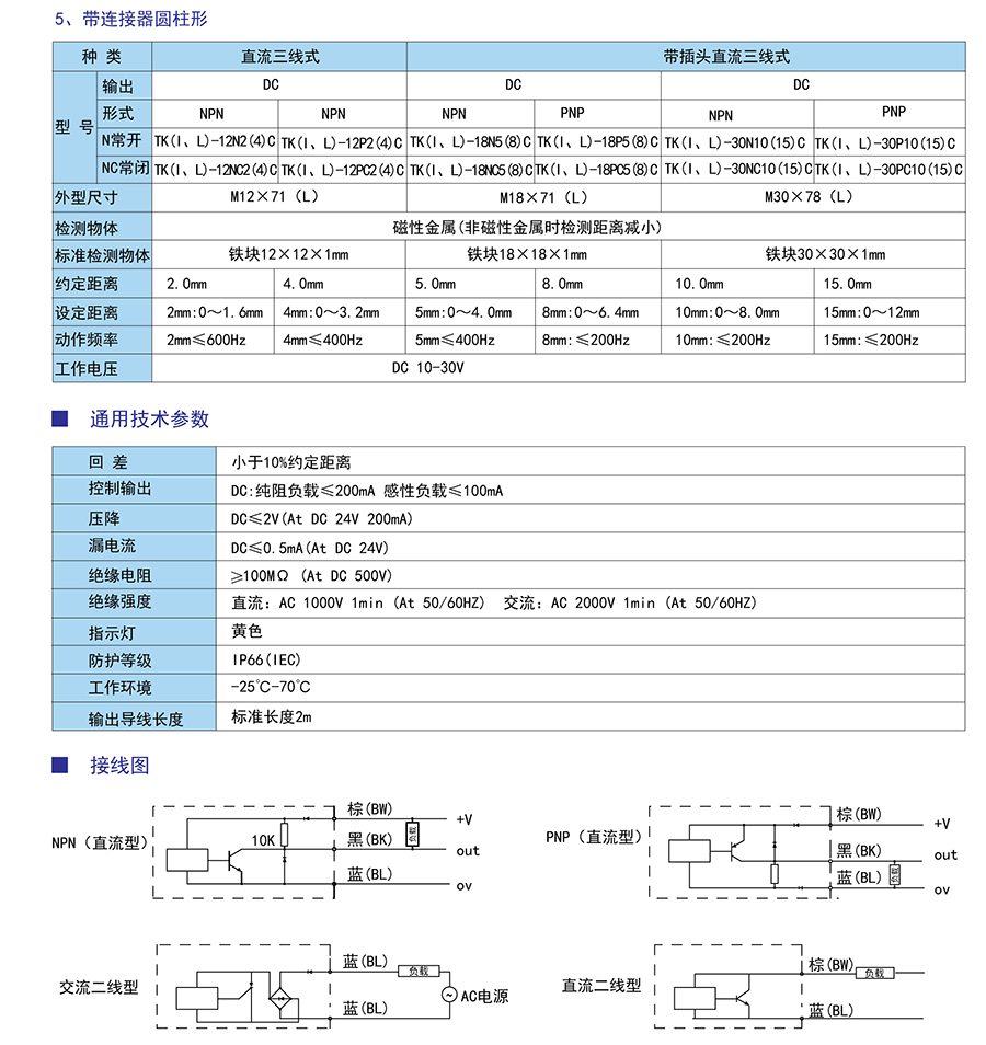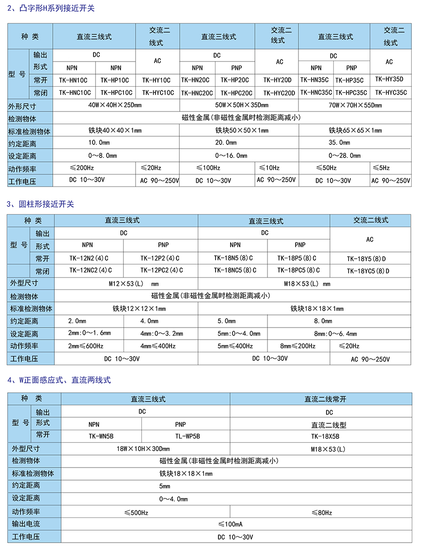 具有三线/二线制、交/直流型、常开/常闭式型号可选