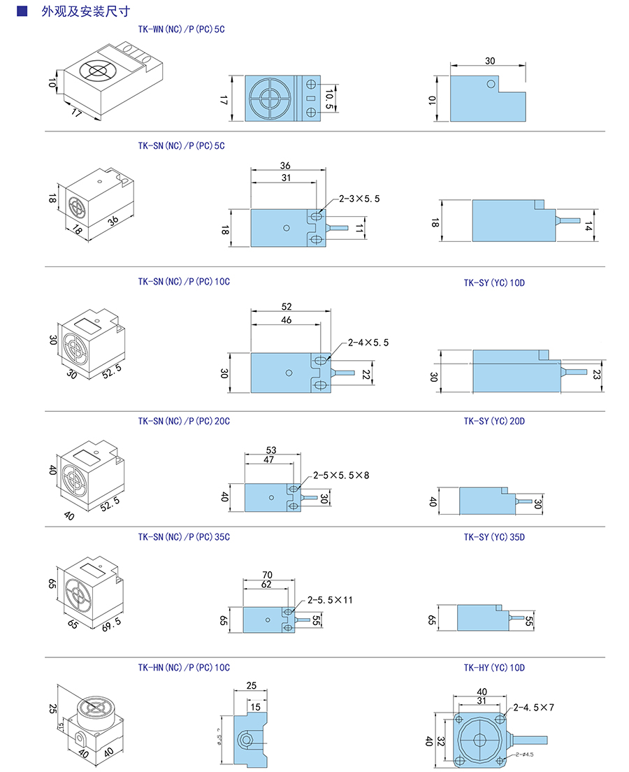 全系列参数具有丰富的安装方式、检测距离、控制方式可选
