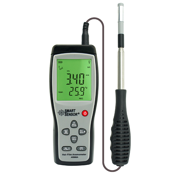 热敏式风速风量计是利用放置在流场中通过加热电流的细金属丝来测量速度的仪器。金属丝中通过加热电流,金属丝的温度保持的恒定,因而当风速变化时,金属丝的换热量就随之而改变, 從而產生了電信號的變化量就可以得到實際流場的速度大小。